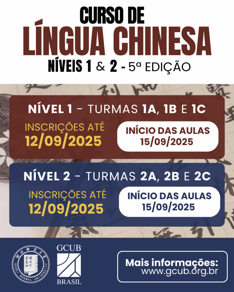O curso é fruto da parceria entre o Grupo de Cooperação Internacional de Universidades Brasileiras (GCUB) e a Universidade Normal de Hebei, na China. Será ministrado online, em português, com três turmas de Nível 1 e três turmas de Nível 2. O início está previsto para 15 de setembro de 2025.